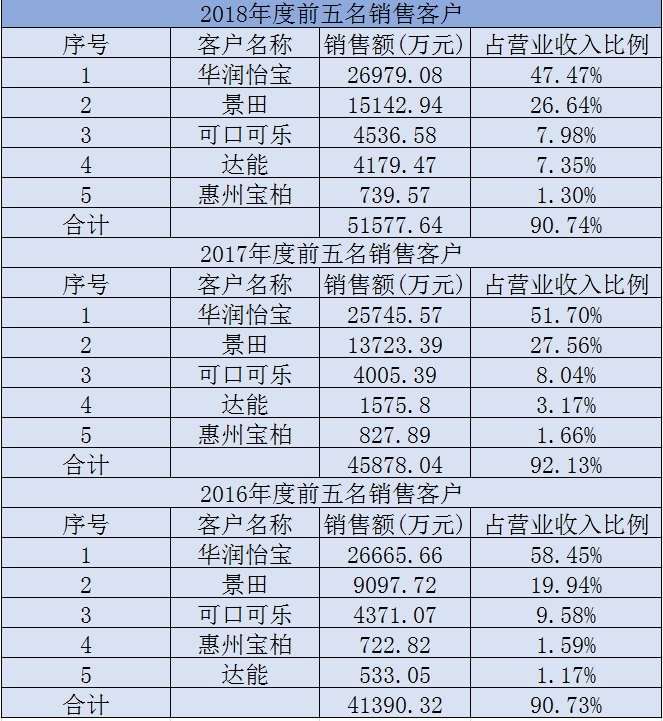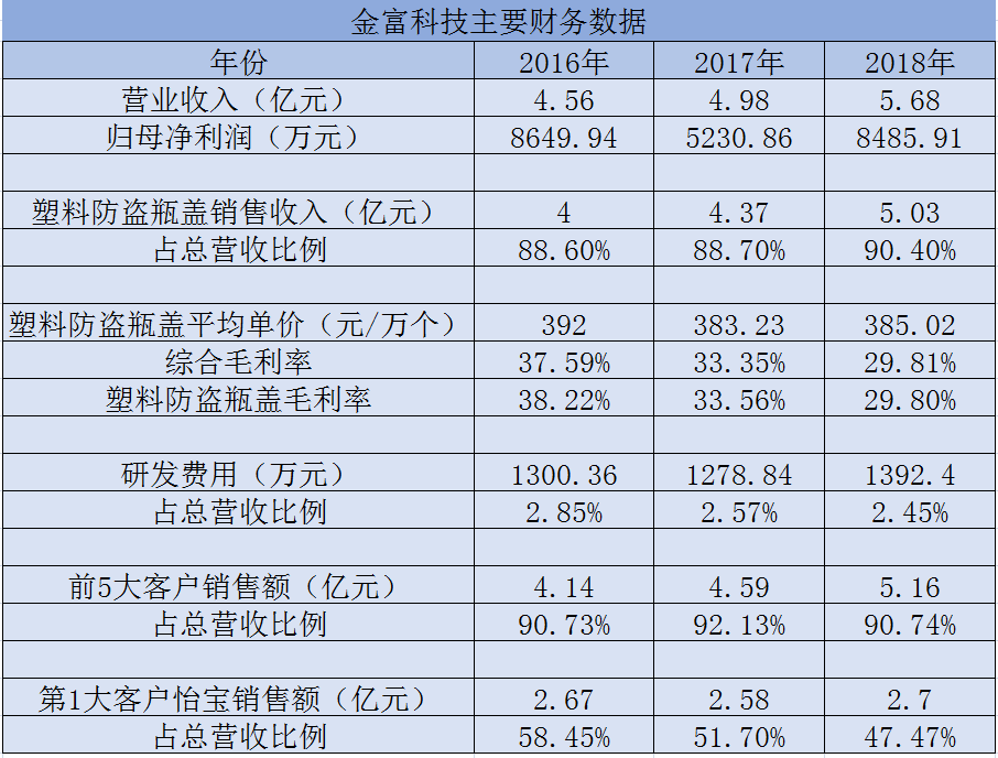因而,金富科技大客户华润怡宝和景田等品牌正在华南地域拥有较大的市场份额,2017年-2018年,近九成业绩都是来自卖“塑料防盗瓶盖”,不外?据金富科技招股书,最后是一家出产打火机零配件的小厂,招股书显示,过度依赖单一客户,